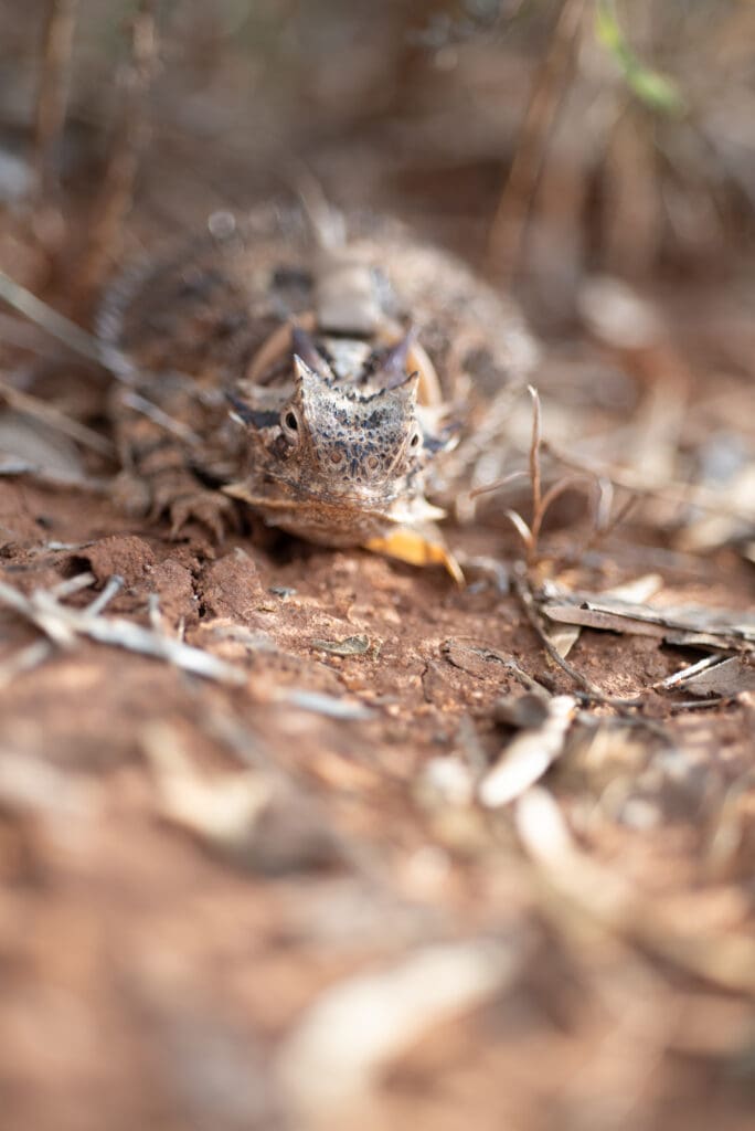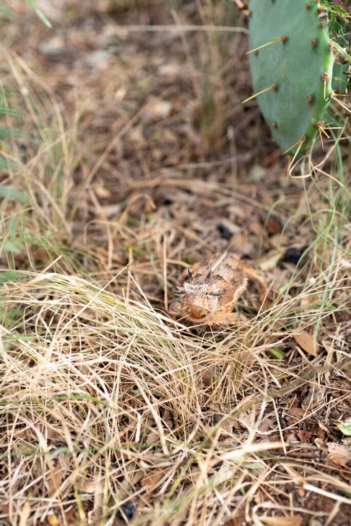 The first Texas Horned Lizard we found was a super model and did not seem to be bothered by us too much. I worked to get as close as I could, laying on the ground and getting eye to eye! Laying down on the ground in our part of Texas is not for the faint of heart. Lots of prickly things, bugs and plants alike!