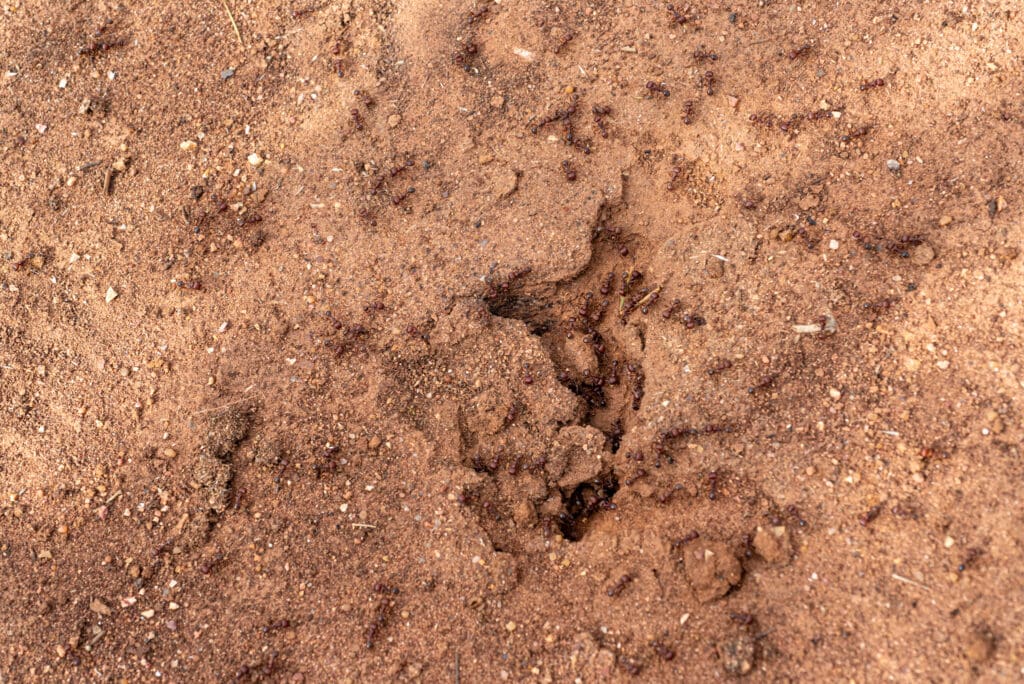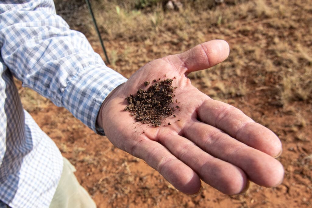 Kira and Brian know where the lizards hang out. To aid in our search Kira has equipped some females with a tracking device, giving the scientist the extra advantage of tracking and studying them. These tags are easily removed and do not bother the Horned Lizards. They are seen in the pictures here. Also shown in the pictures is a lizard dropping and notice all of the Harvester Ants contained in it. Harvester Ants are a primary part of the adult Texas horned lizard’s diet.